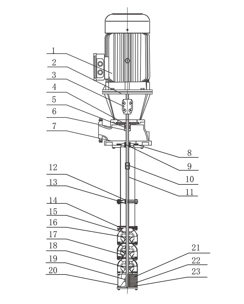 Эта часть состоит из водопроводных труб, приводных валов, муфт и кронштейнов. Водопроводная труба соединена фланцем, а вал трансмиссии изготовлен из стали 2Cr13 или нержавеющей стали.