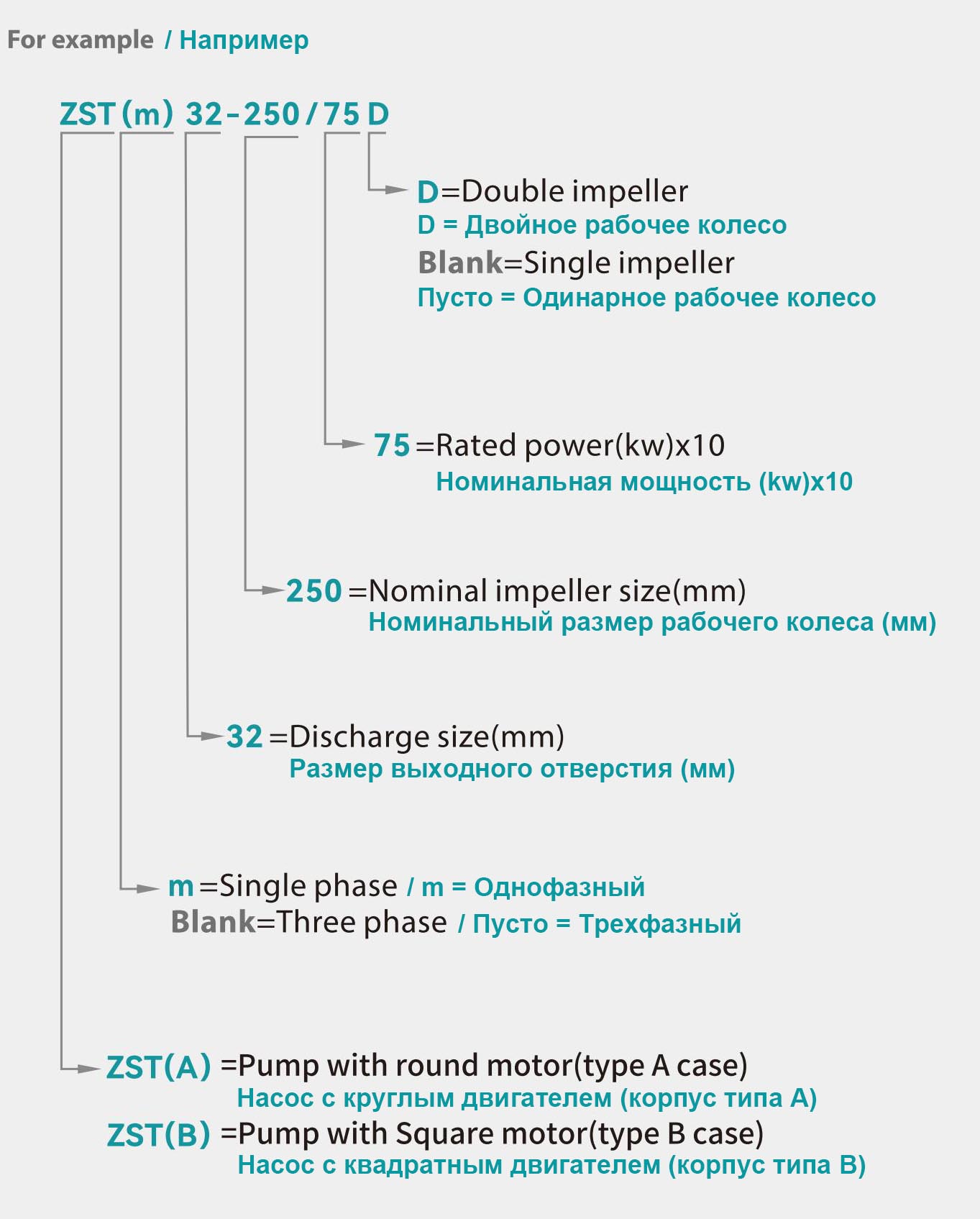 | ZST32-250/55 | 50x32 | 5.5 | 7.5 | 60 | 59.5 | 59 | 55 | 50.2 | 34.5 | - | - | - | - | - | - | - | - | - | - | - |